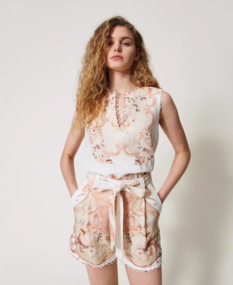 Printed linen shorts
