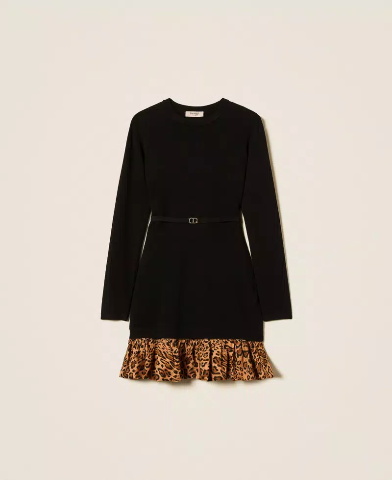 Short knit dress with animal print insert