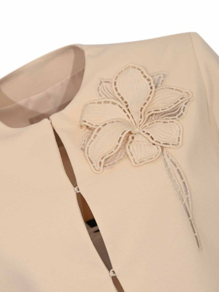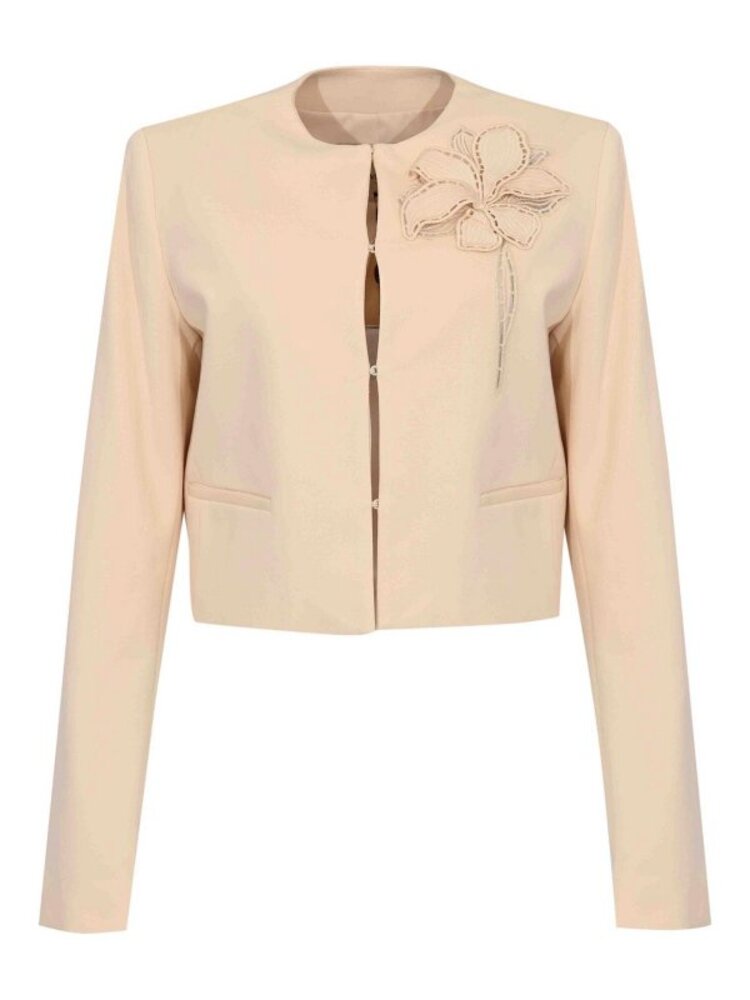 TWINSET WOMEN’S CROPPED BEIGE BLAZER WITH FLORAL DETAIL