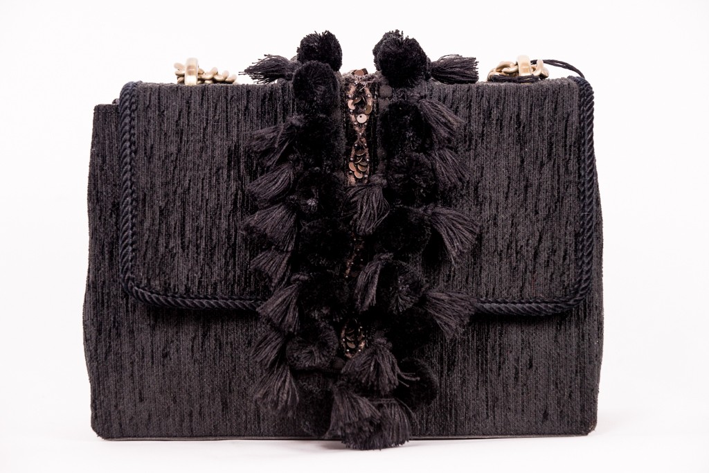 leather bag with velvet with wool details.