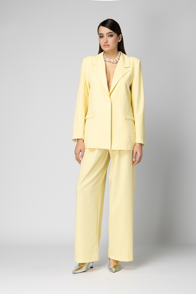 - Forever Young κομψό παντελόνι σε απαλή κίτρινη απόχρωση με διακριτικές ρίγες ιδανικό για μοντέρνες και tailored εμφανίσεις.Η ίσια γραμμή του προσφέρει άνετη εφαρμογή και κομψή σιλουέτα ενώ το ελαφρύ ύφασμα το καθιστά ιδανικό για όλη τη διαρκεια της ημέρας.