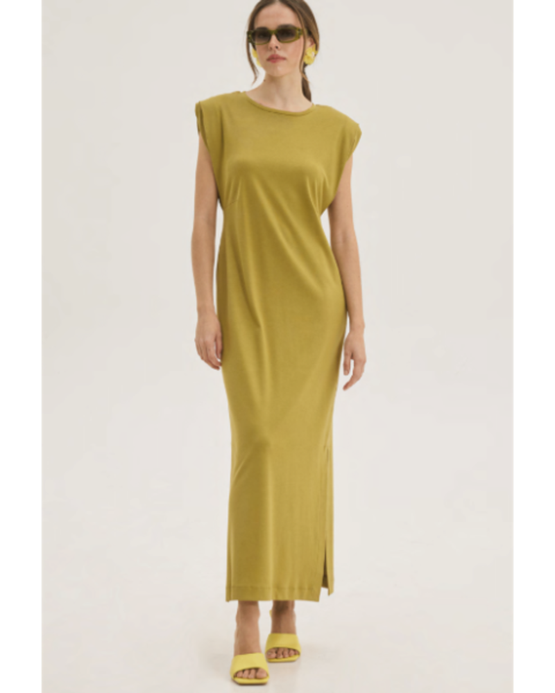 - INNOCENT κομψό μουσταρδί μάξι φόρεμα σε μοντέρνα γραμμή. Σχεδιασμένο με ελαφριά ενίσχυση στους ώμους για διακριτή δομή και ίσια, ρευστή εφαρμογή που αγκαλιάζει το σώμα, προσφέρει άνεση και θηλυκή σιλουέτα. Το μήκος του φτάνει μέχρι τον αστράγαλο, ενώ το διακριτικό πλαϊνό άνοιγμα προσφέρει ευκολία στην κίνηση και κομψότητα.