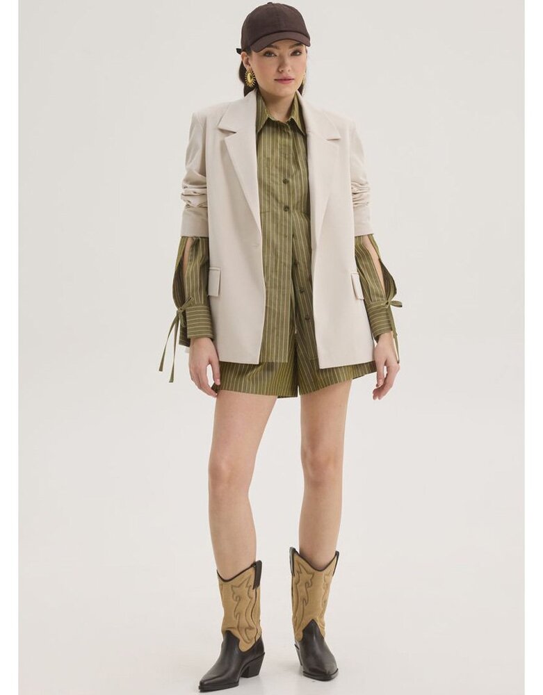 INNOCENT OVERSIZED STRIPED SHIRT WITH OPEN SLEEVE IN KHAKI COLOR S26.9709.