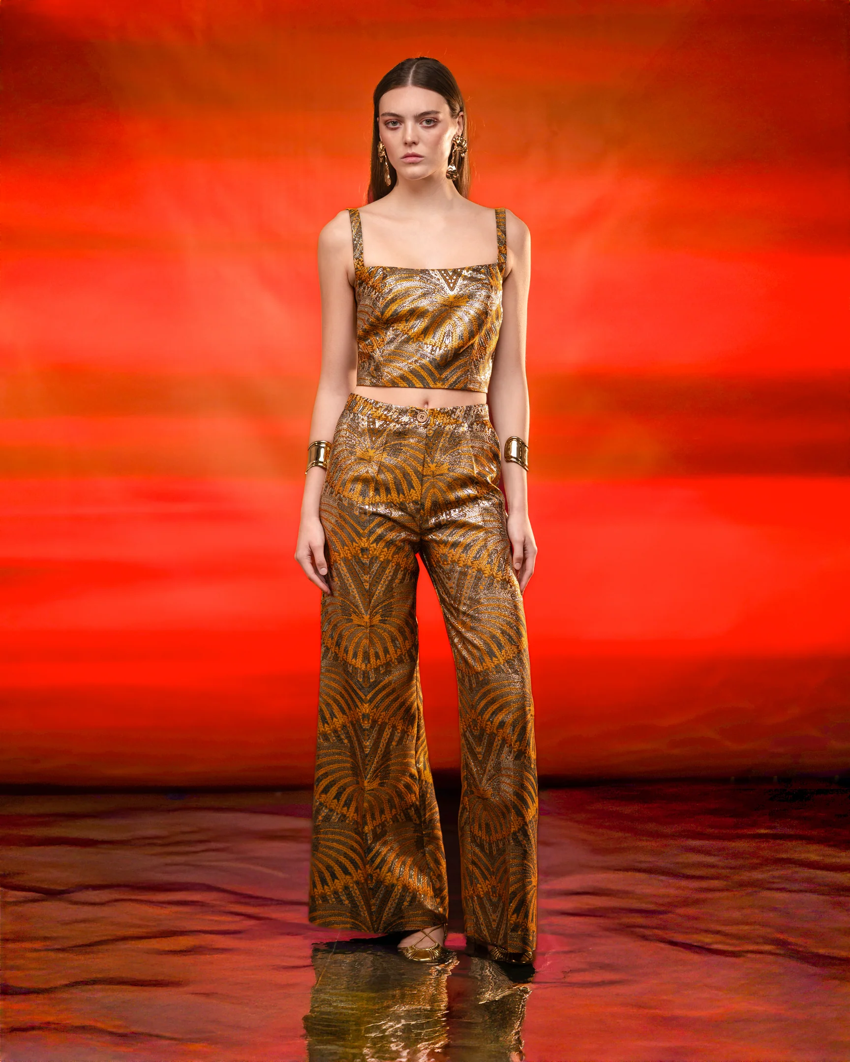 - C.MANOLO crop top με φαρδιές τιράντες . σε αποχρώσεις καφε-χρυσού.