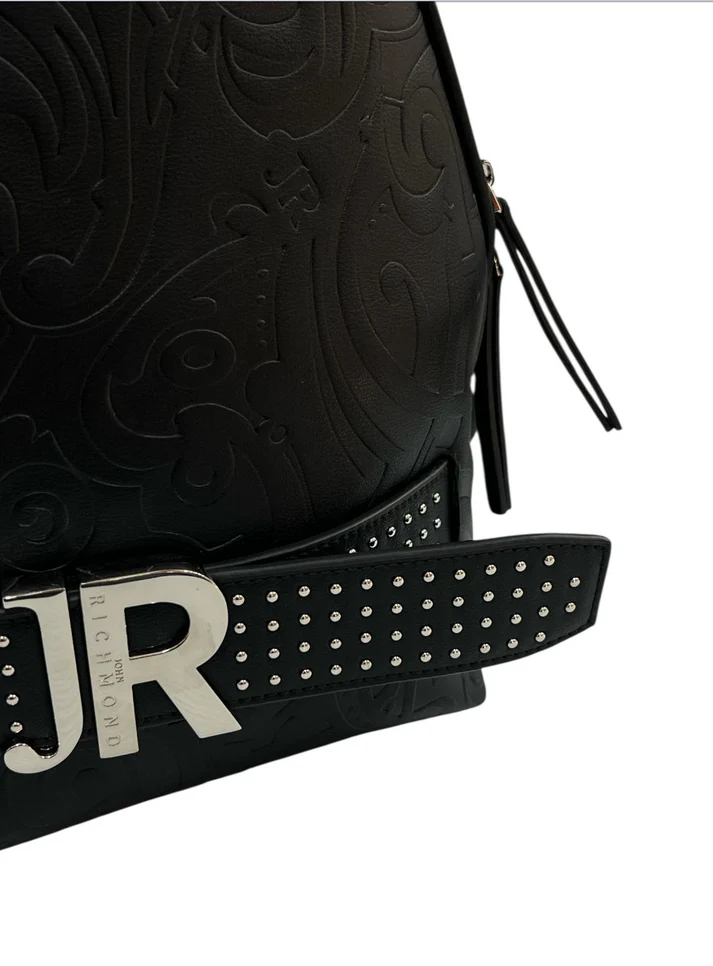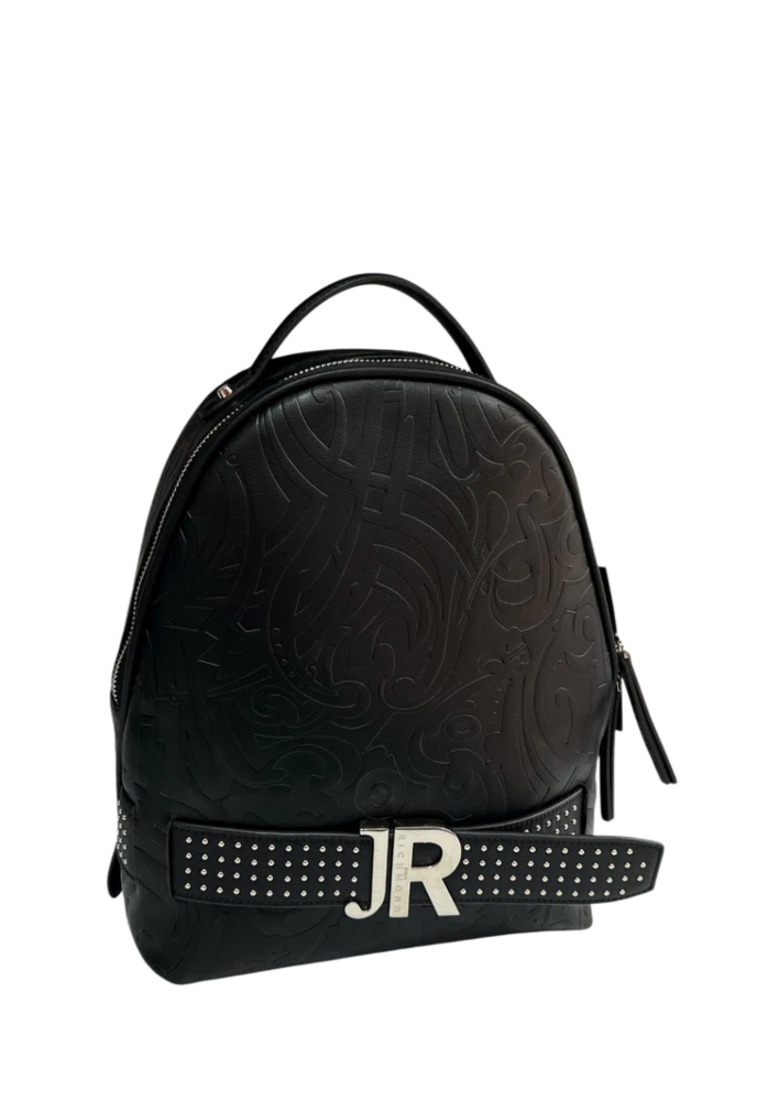 The front features a black horizontal band with silver studs, embellished with a buckle featuring the initials “JR” in polished metal.