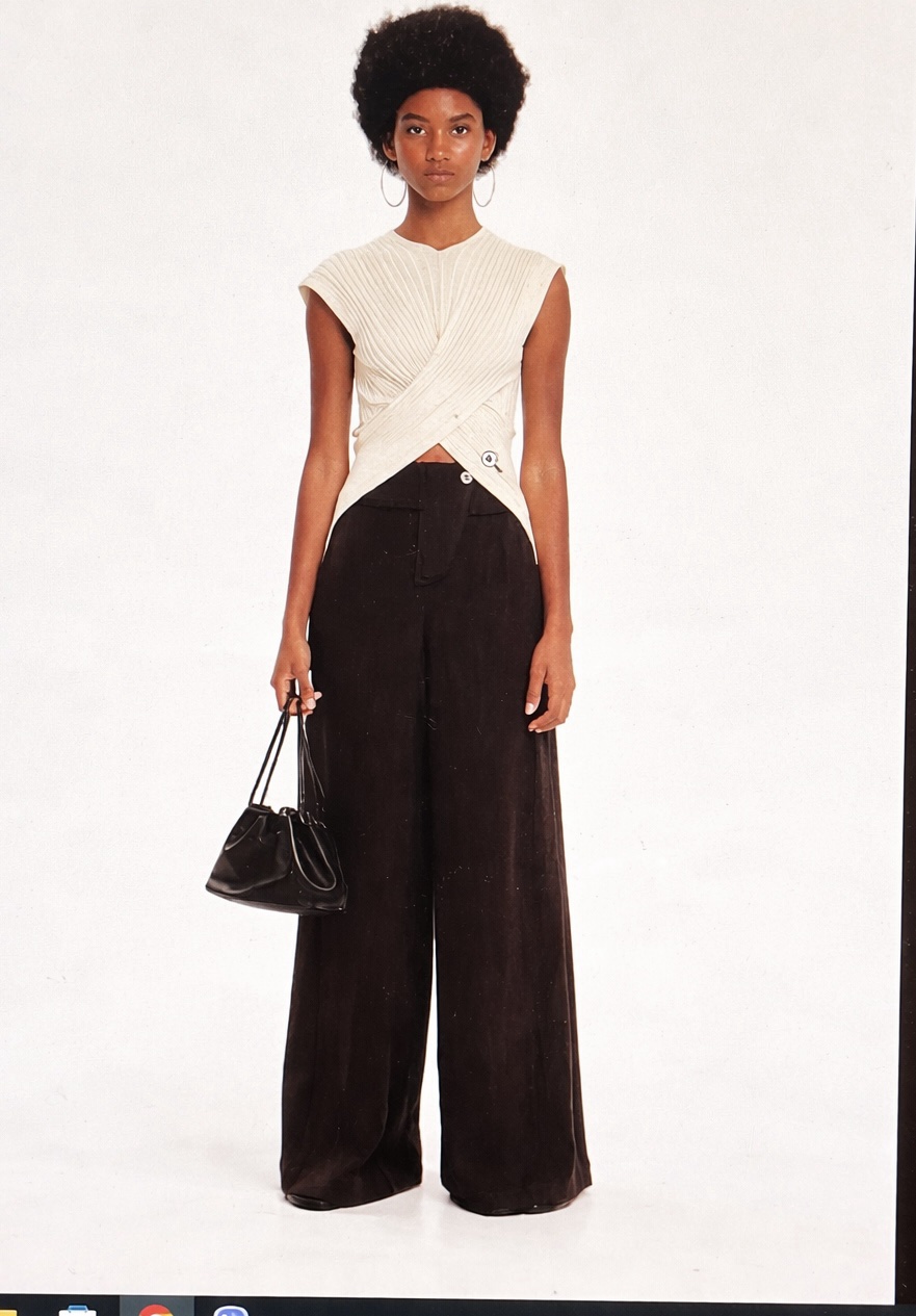 - Kourbela εκρού πλεκτό τοπ rossed με ασυμμετρία και κοντά μανίκια, κατασκευασμένο από ελαστικό νήμα βισκόζης. Διαθέτει ελαστική, ριπ πλέξη με άνετη εφαρμογή που αγκαλιάζει απαλά το σώμα και δημιουργεί ασυμμετρία στη γραμμή του τελειώματος. Συνδυάζεται τέλεια με τα κάτω μέρη της συλλογής, προσφέροντας κομψές, καλοκαιρινές εμφανίσεις.