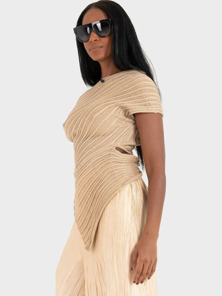 KOURBELA KNIT TOP GOLD BEIGE – SPARKLING STAPLES S26285-13446.