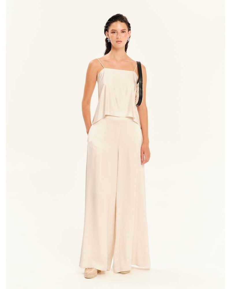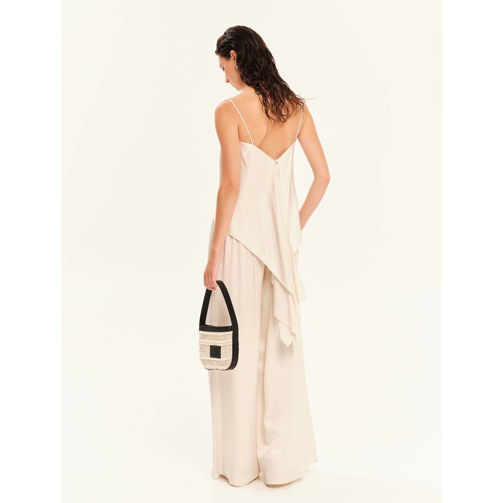 - Kourbela ασύμμετρο τοπ εκρού με λεπτές τιράντες, κατασκευασμένο από απαλό, ρέον ύφασμα που αγκαλιάζει τη σιλουέτα με κομψότητα. Το πίσω μέρος διαθέτει εντυπωσιακό drape που πέφτει φυσικά, προσδίδοντας κίνηση και θηλυκότητα σε κάθε σας βήμα. Ιδανικό για να συνδυαστεί με φαρδιές παντελόνες ή μίνιμαλ φούστες, δημιουργώντας ένα κομψό και μοντέρνο σύνολο για βραδινές ή καθημερινές εμφανίσεις. Ένα διαχρονικό κομμάτι που συνδυάζει απλότητα, άνεση και στυλ.