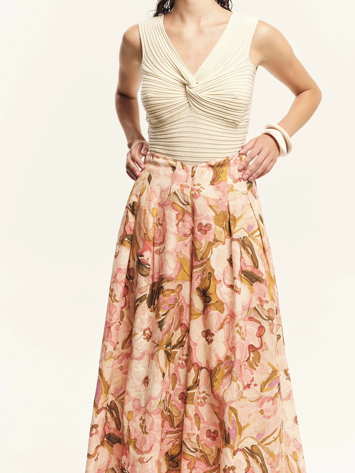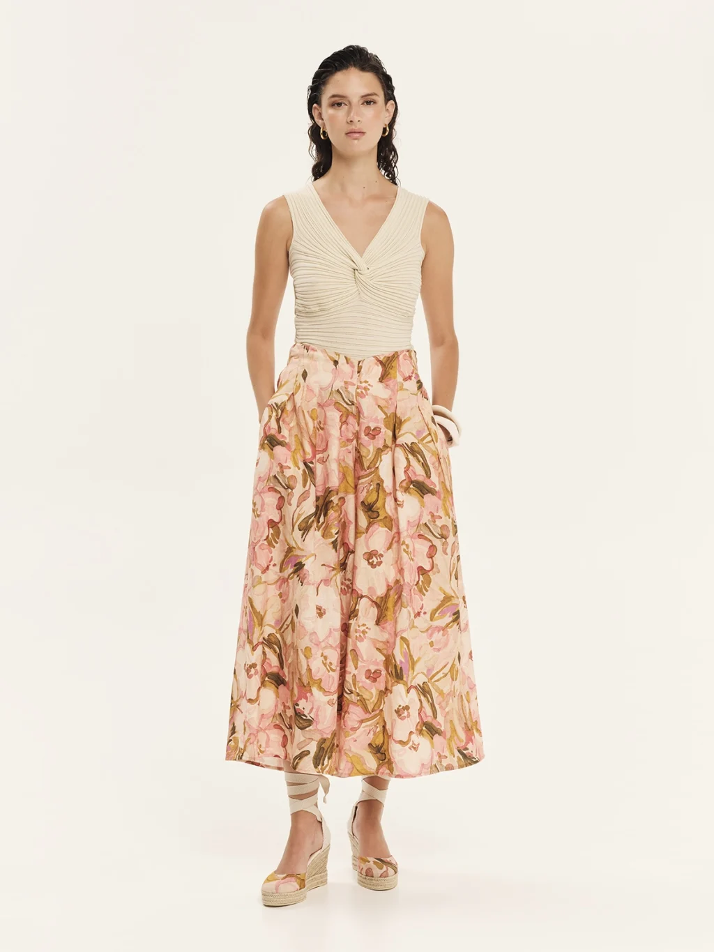 - Πλεκτό αμάνικο τοπ με κόμπο μπροστά από ελαστικό νήμα βισκόζης. Έχει ελαστική ριμπ πλέξη με άνετη εφαρμογή που αγκαλιάζει τη σιλουέτα και κολακευτική “V” λαιμόκοψη. Ο κόμπος εμπρός προσδίδει ένα ιδιαίτερο καλοκαιρινό στοιχείο αναβαθμίζοντας το ύφος του σχεδίου. Συνδυάζεται άψογα με τα κάτω μέρη της συλλογής συνθέτοντας κομψά, καλοκαιρινά σύνολα.