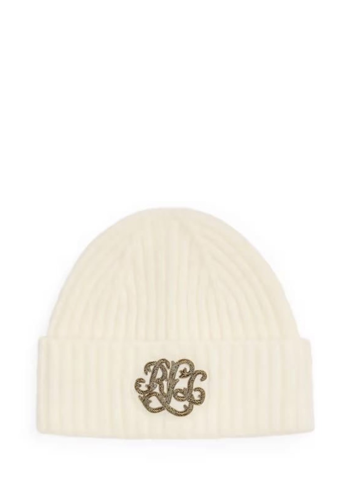 LAUREN RALPH LAUREN EMBROIDERED LOGO CABLE KNIT BEANIE