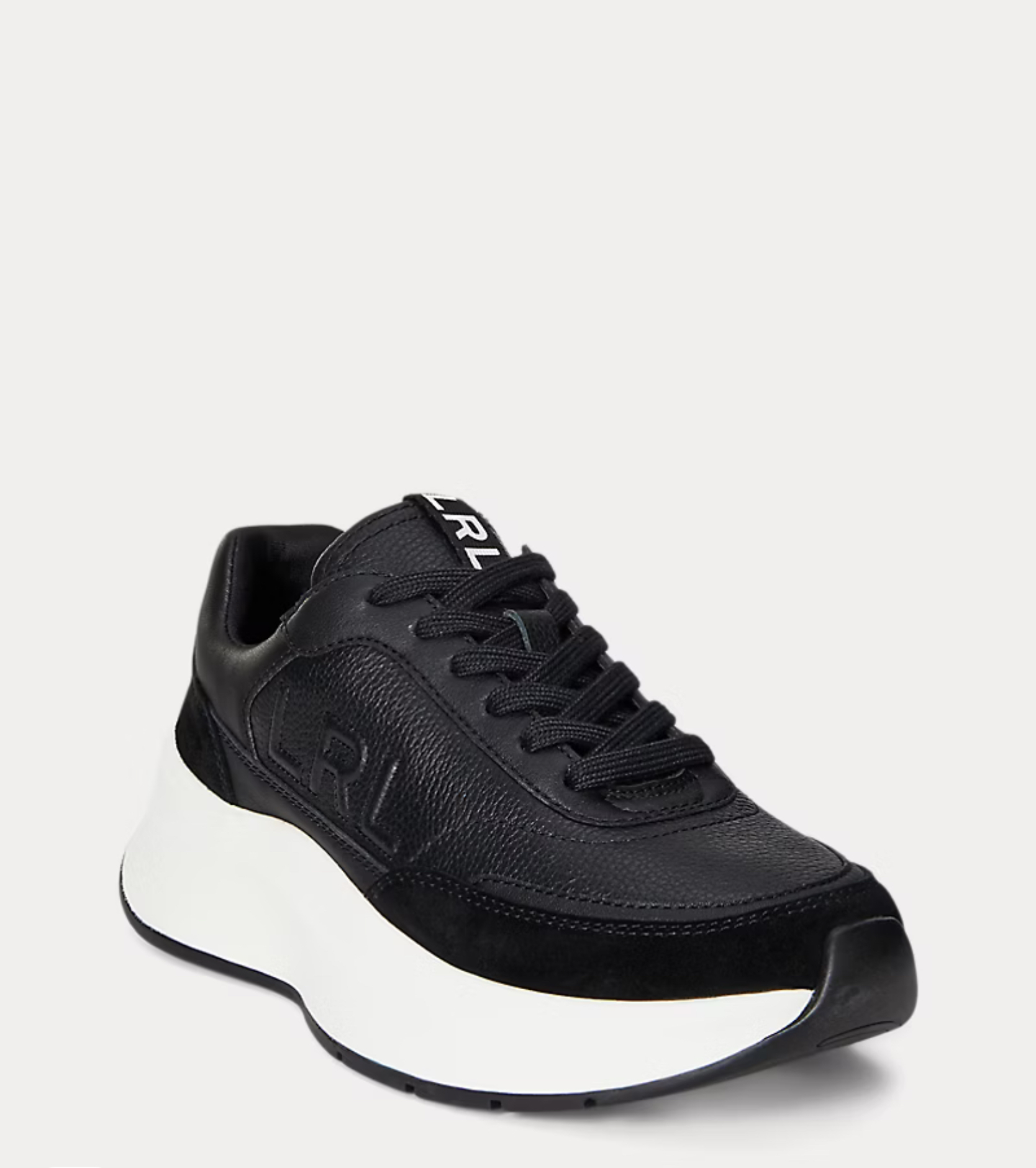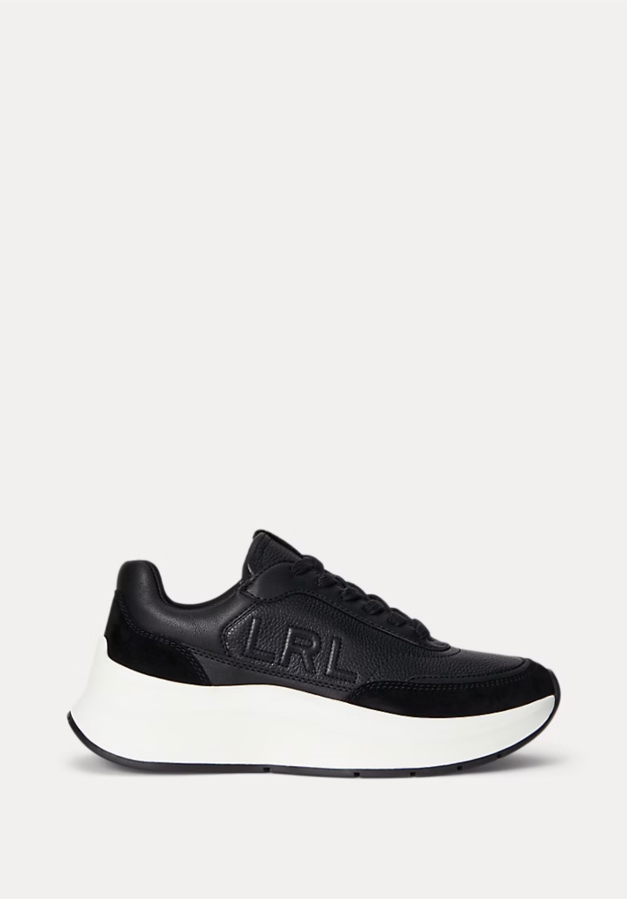 LAUREN RALPH LAUREN FRANKY TUMBLED LEATHER & SUEDE TRAINER