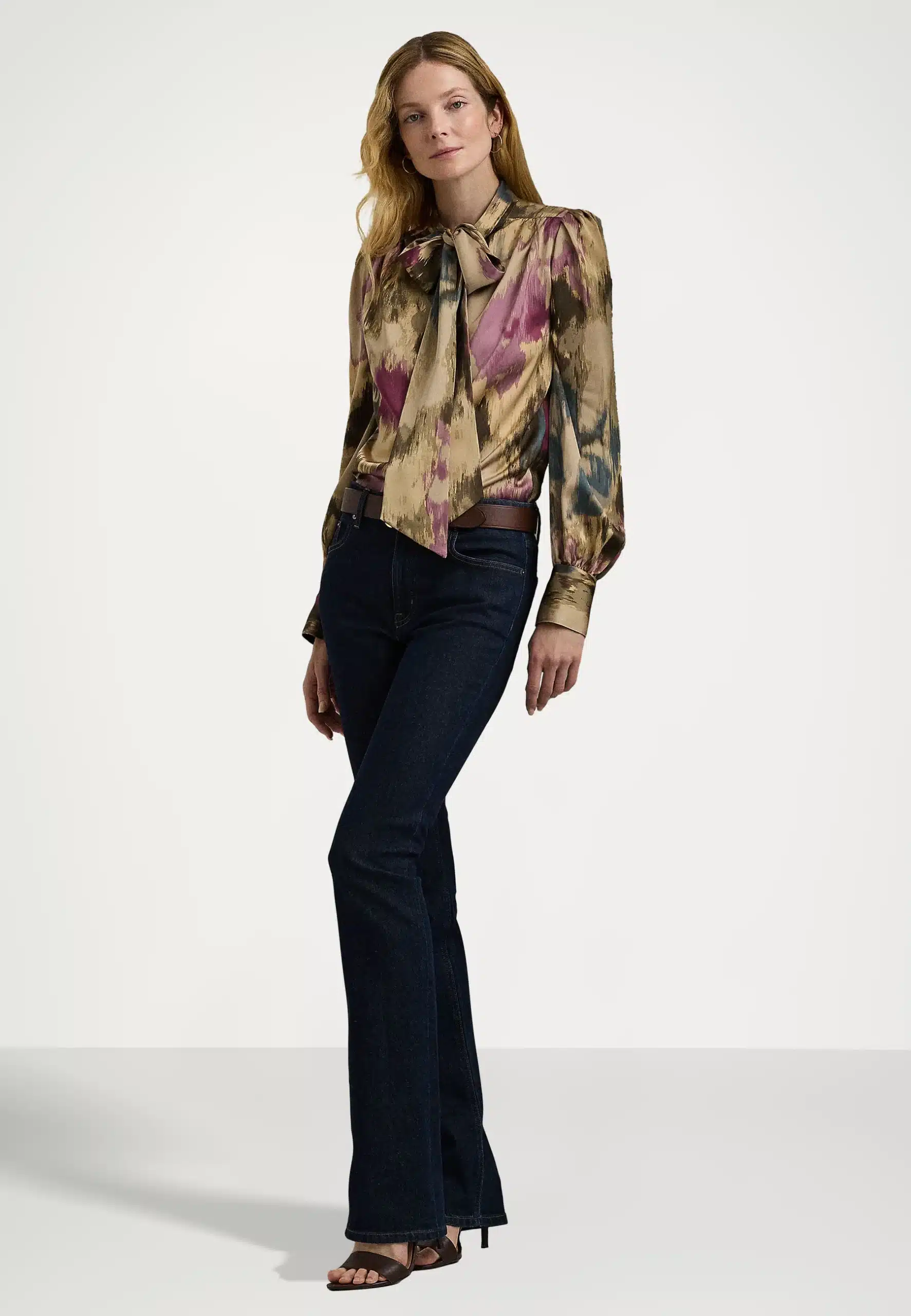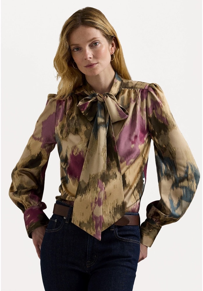LAUREN RALPH LAUREN KLARYCE LONG SLEEVE BUTTON FRONT SHIRT