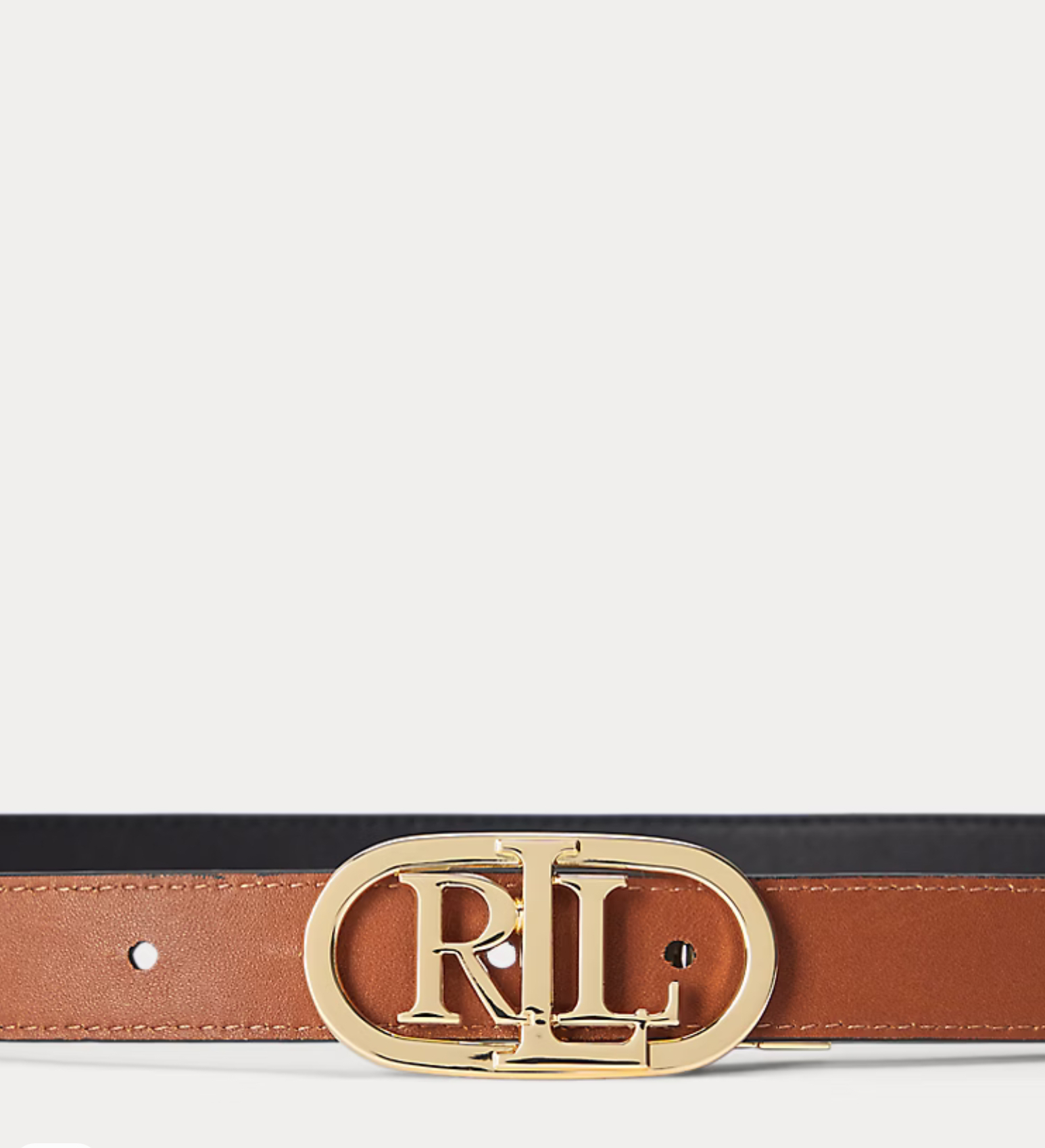 LAUREN RALPH LAUREN OVAL LOGO REVERSIBLE LEATHER SKINNY BELT