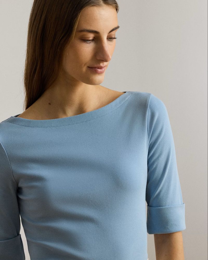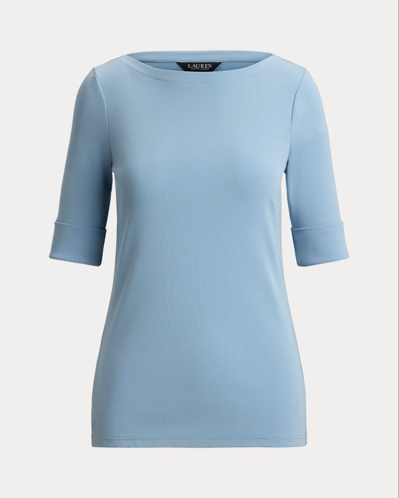 LAUREN RALPH LAUREN STRETCH COTTON BOATNECK T-SHIRT