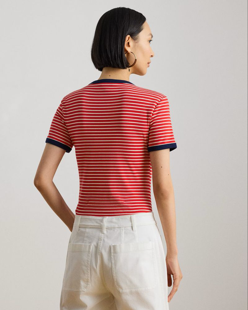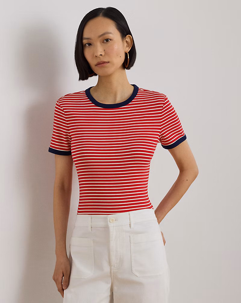 LAUREN RALPH LAUREN STRIPED STRETCH COTTON T-SHIRT