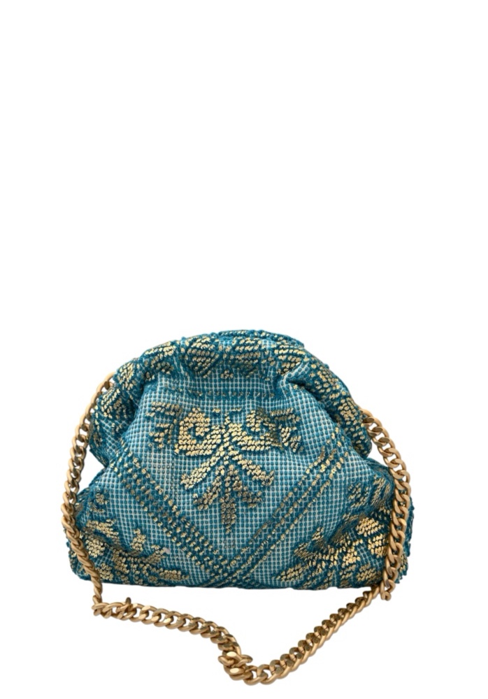 The small clutch bag with a chubby shape was born as a hand bag, but if necessary it is possible to extract a chain shoulder strap which transforms it into a shoulder bag, the spring closure encloses the interior completely lined in cotton, including a pocket with zip closure for storing smaller objects. Unique, exclusive and original, the Olbia line was born because I liked the idea of having a feminine but comfortable bag. Made of embroidered cotton, loom work and hand finishing using old traditional methods. I gave it different shapes: starting from the shopping bags, which are more spacious to hold the laptop, cosmetics and everything you need for a day away from home or at the seaside, ending with the clutch bags which are smaller and prettier to wear them comfortably in a hot summer evening. From the liveliest and brightest colors to the most neutral and essential ones, the Olbia line is the true representation of Daf bags in which creativity and craftsmanship stand out.
