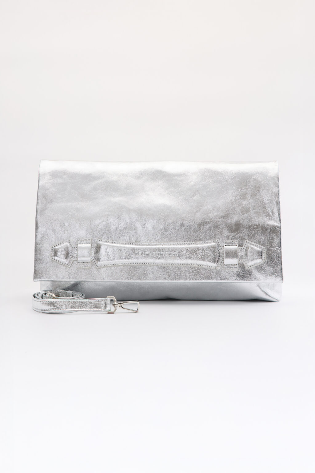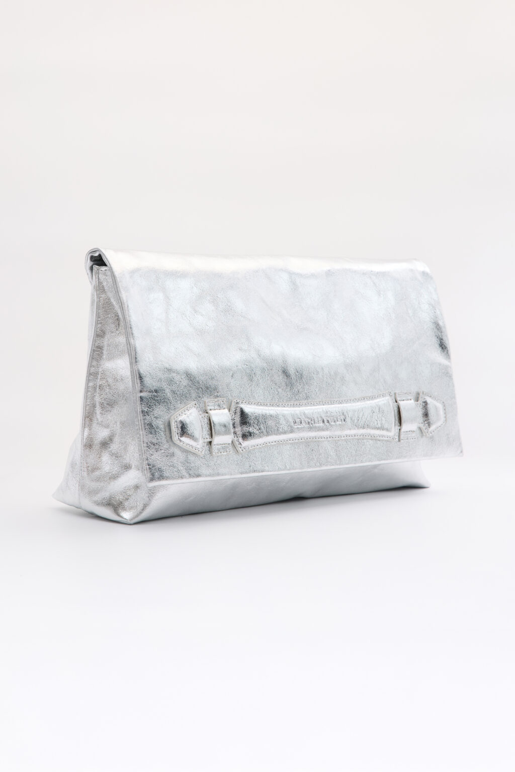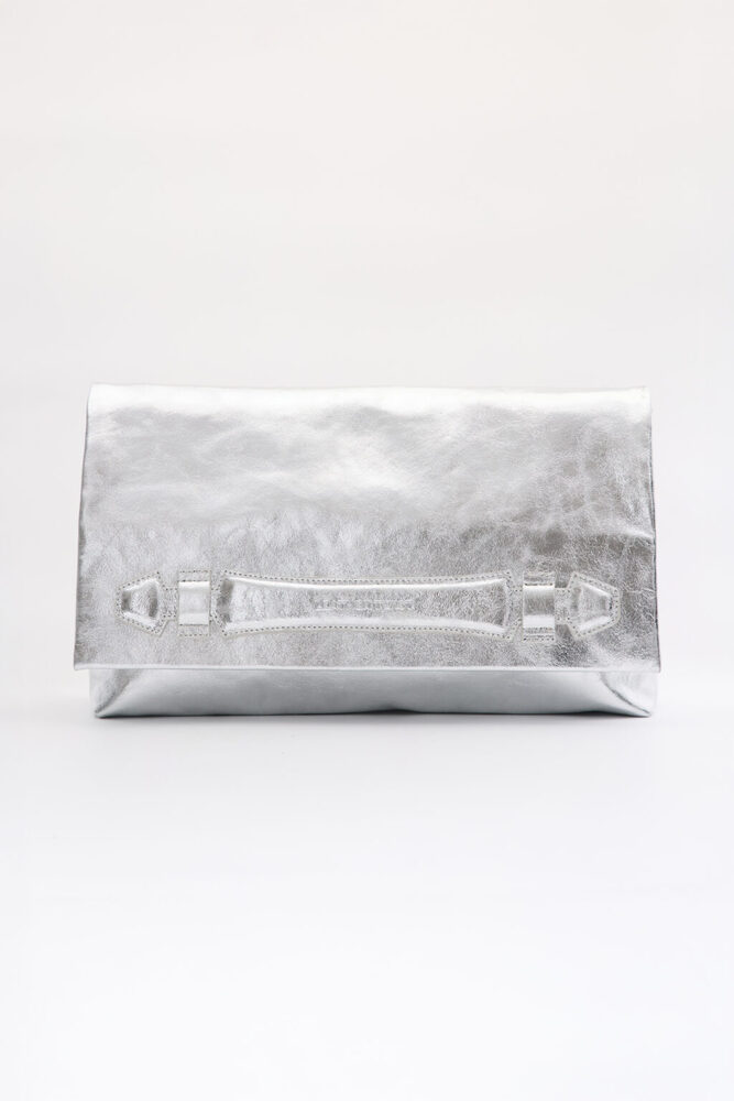 - Leather Twist δερμάτινη ασημί τσάντα