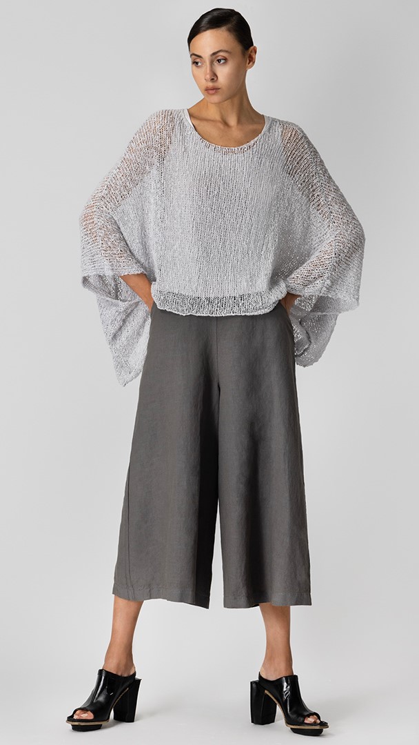Crop Blouse Grey Crop μπλούζα πλεκτή σε γκρι- λευκό χρώμα με φαρδύ μανίκι που δημιουργεί εφέ νυχτερίδας.
