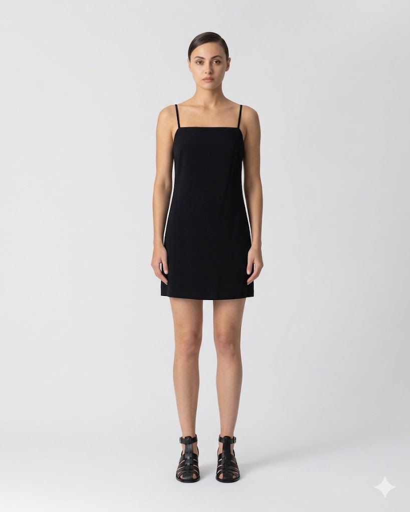 Κομψό και διαχρονικό μίνι φόρεμα σε μαύρο χρώμα, που αποτελεί ιδανική επιλογή για κάθε γυναίκα που αναζητά ένα κομμάτι που μπορεί να φορεθεί σε πολλές διαφορετικές περιστάσεις. Το φόρεμα έχει τετράγωνη λαιμόκοψη και λεπτές ράντες, οι οποίες προσδίδουν μια θηλυκή και εκλεπτυσμένη πινελιά. Είναι φτιαγμένο από υλικό υψηλής ποιότητας που αγκαλιάζει απαλά το σώμα, προσφέροντας άνεση και στυλ.