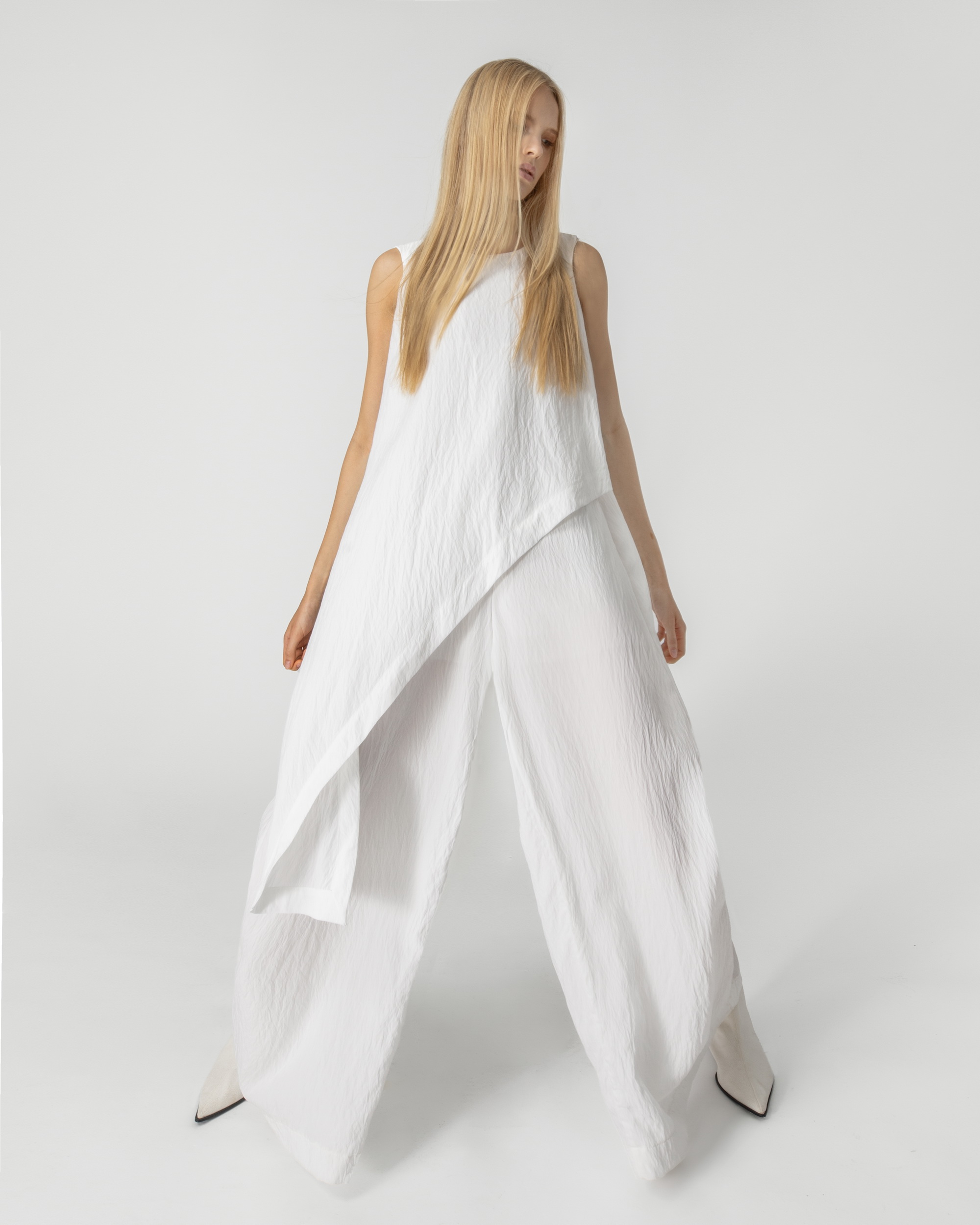 Αναβαθμίστε την καλοκαιρινή σας γκαρνταρόμπα με ένα σύνολο που επαναπροσδιορίζει την minimal κομψότητα. Φτιαγμένο από ανάλαφρο ύφασμα με διακριτική ανάγλυφη υφή, αυτό το σετ προσφέρει την απόλυτη αίσθηση ελευθερίας και στυλ, από το πρωί στο νησί μέχρι τις επίσημες βραδινές σας εξόδους.