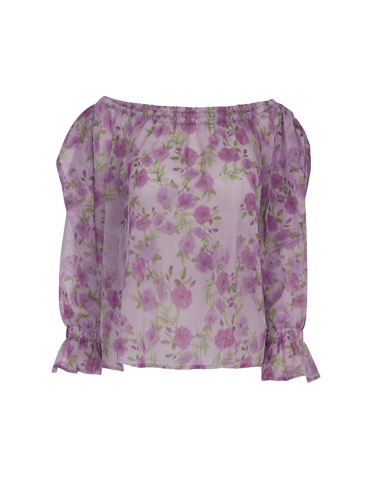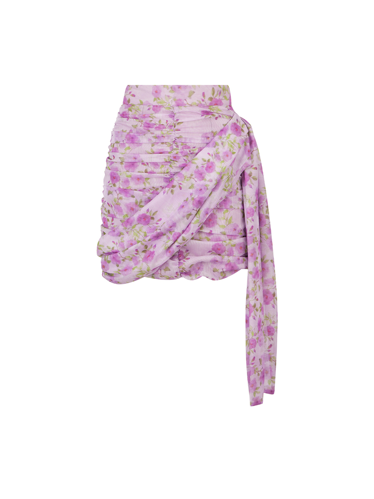 LOVE+ ALICIA SET LIORA DRAPED MINI SKIRT AND MACAN OFF-SHOULDER TOP IN PURPLE 621212. 621339 P