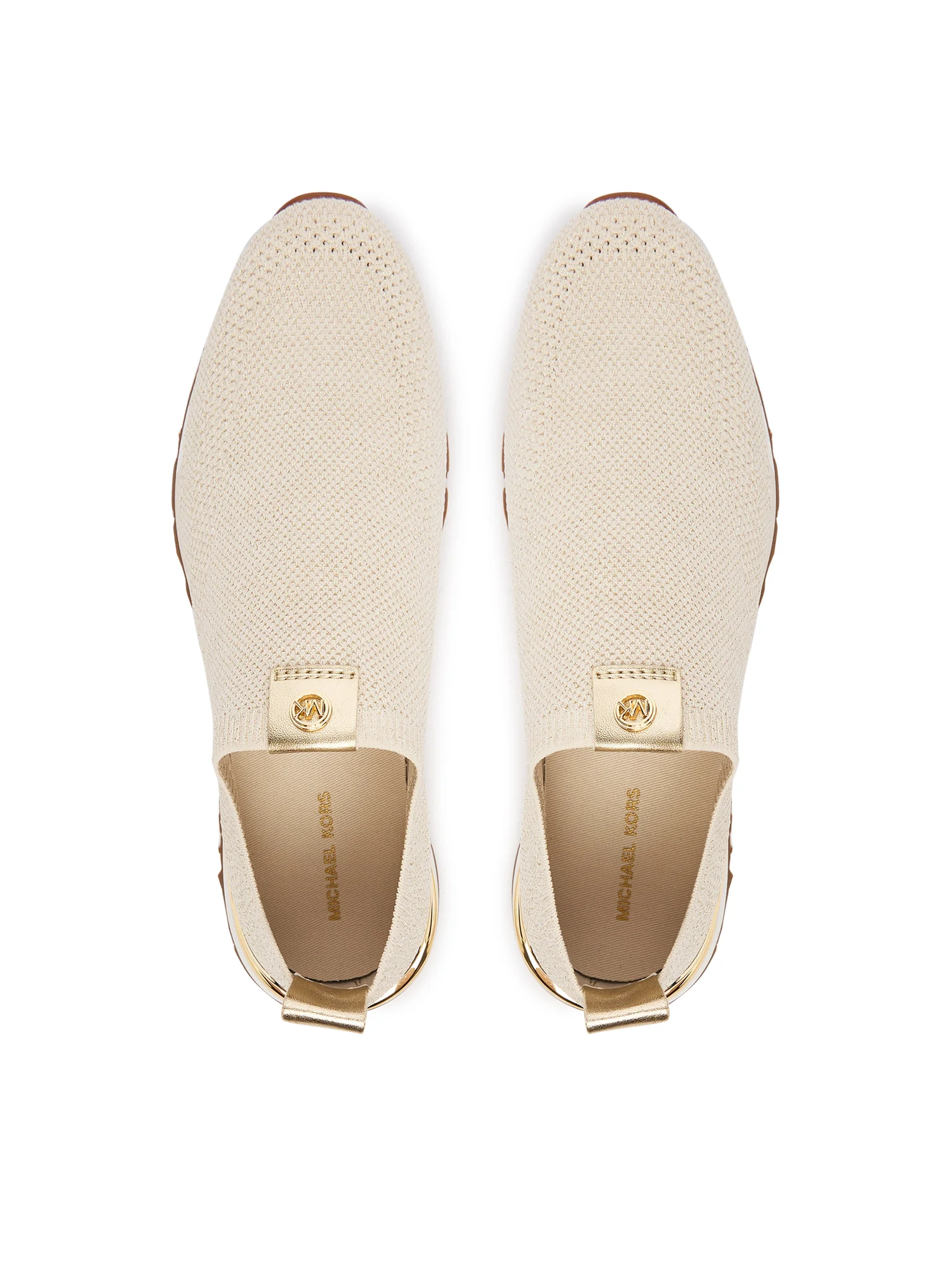MICHAEL KORS NOVA SLIP-ON TRAINERS IN PALE GOLD METALLIC STRETCH MESH
