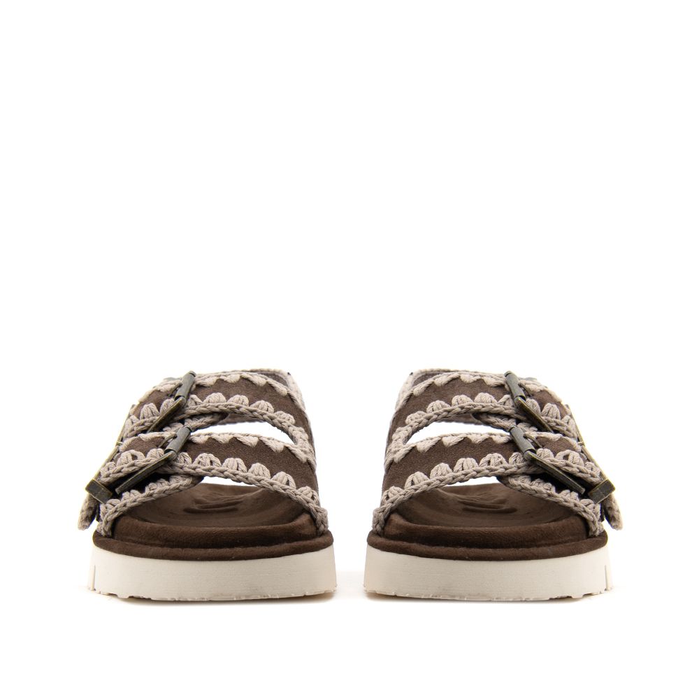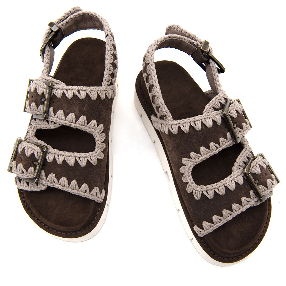- Κατασκευασμένο από σουέτ υψηλής ποιότητας και με δύο μπροστινά λουράκια, λουράκι στον αστράγαλο και το σήμα κατατεθέν, το κροσέ βελονάκι της Mou, η υποστηρικτική, ελαφριά σόλα EVA έχει φινίρισμα με επενδεδυμένο πάτο από μικροσουέτ για επιπλέον άνεση.