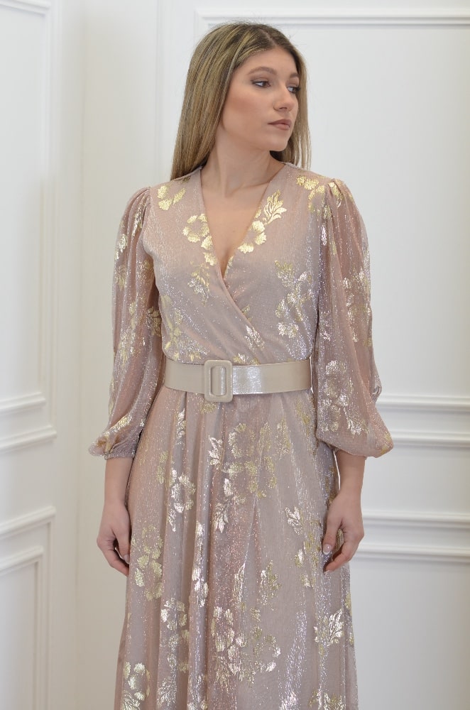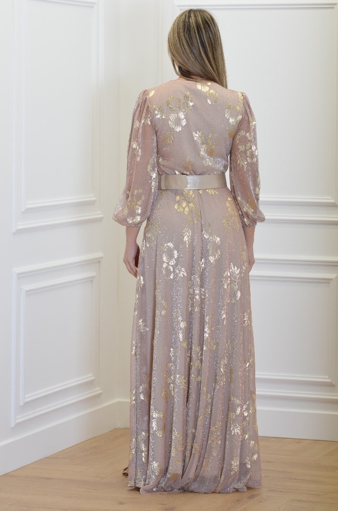 OPEN FASHION FLORAL LUREX DRESS