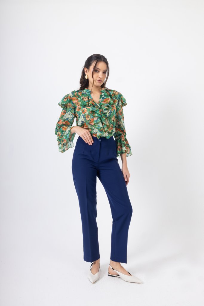 OPEN FASHION HIGH-WAIST NAVY TROUSERS WITH STRAIGHT LEG AND BUTTON KM117.