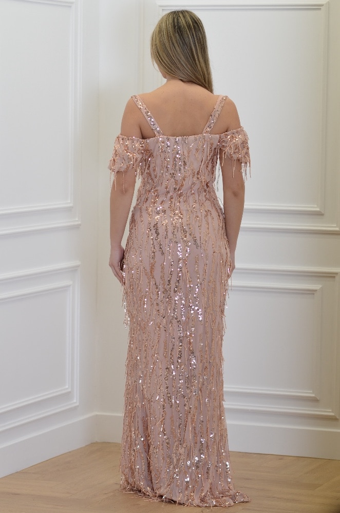OPEN FASHION LONG DRESS WITH SEQUIN FRINGES