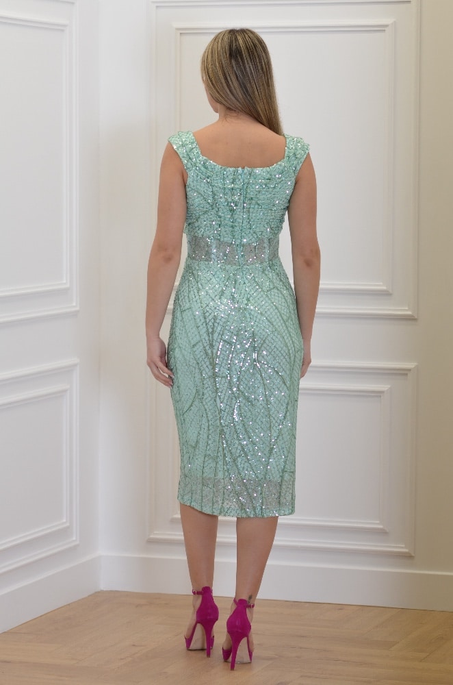 OPEN FASHION MINT OFF SHOULDER SEQUIN MIDI DRESS