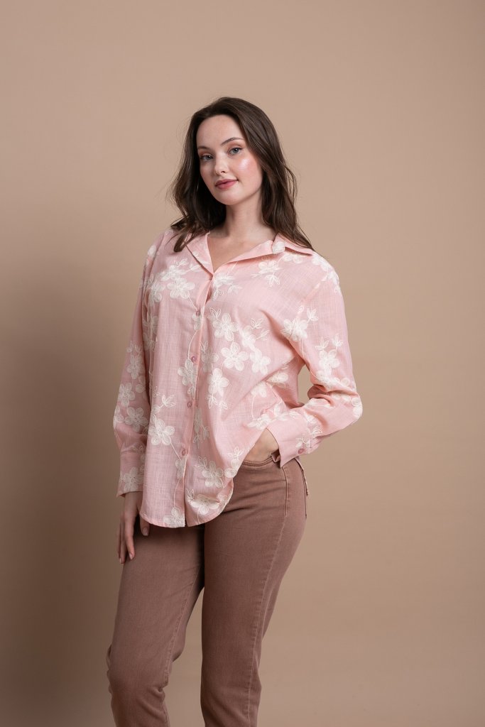 - Open Fashion πουκάμισο γυναικείο ρόζ με διακριτικό floral σχέδιο
