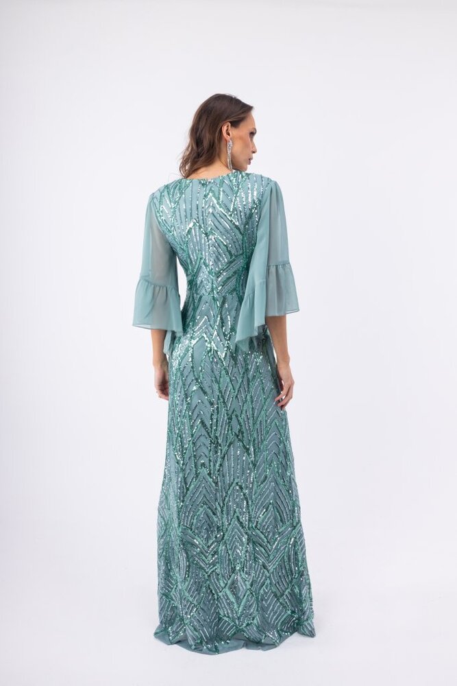 OPEN FASHION WOMEN’S MAXI DRESS MINT WITH SEQUINS AND SHEER SLEEVES KM605.