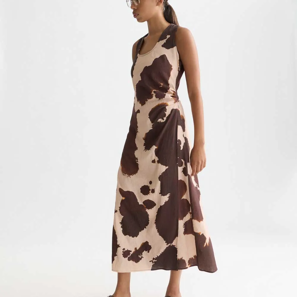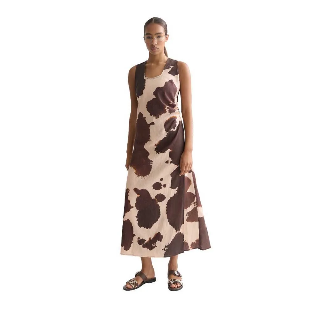 SCOTCH & SODA LINEN SLEEVELESS MIDI DRESS BROWN