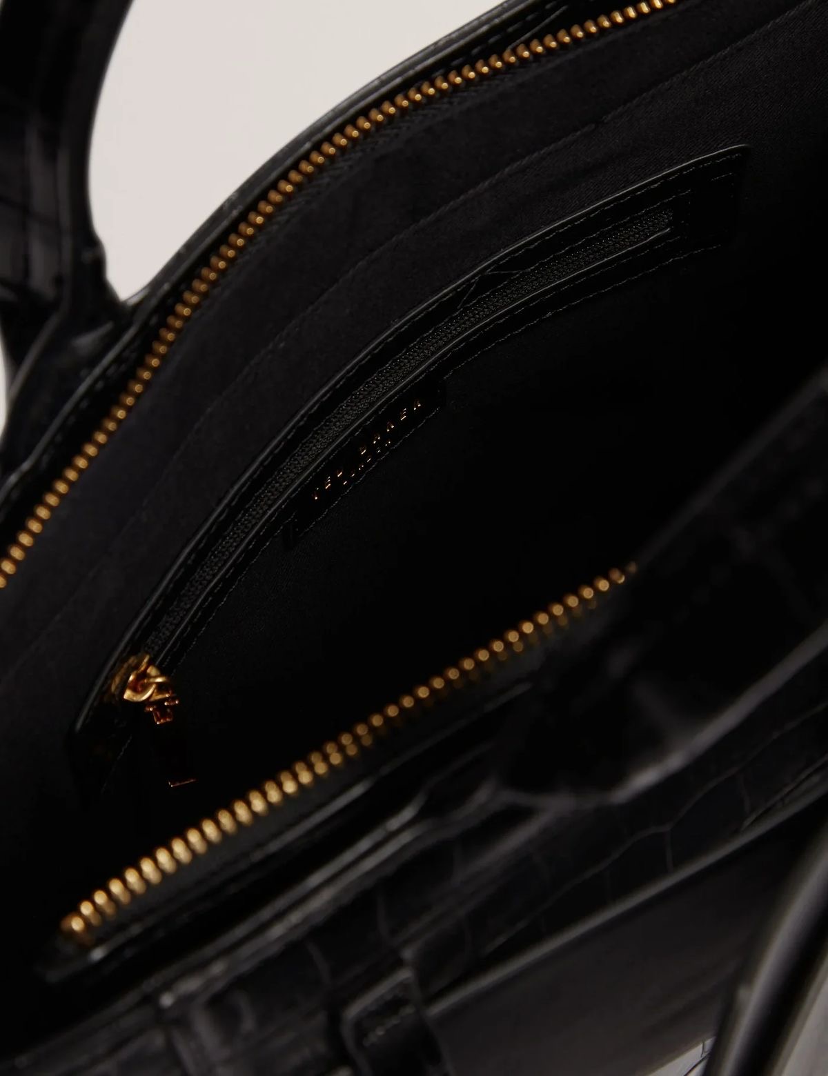 JJOSIA is the classy little tote bag that can do it all. A glossy croc texture outer is wrapped with an oversized bow trim, complete with a removable crossbody strap that takes it from daytime to date night.
