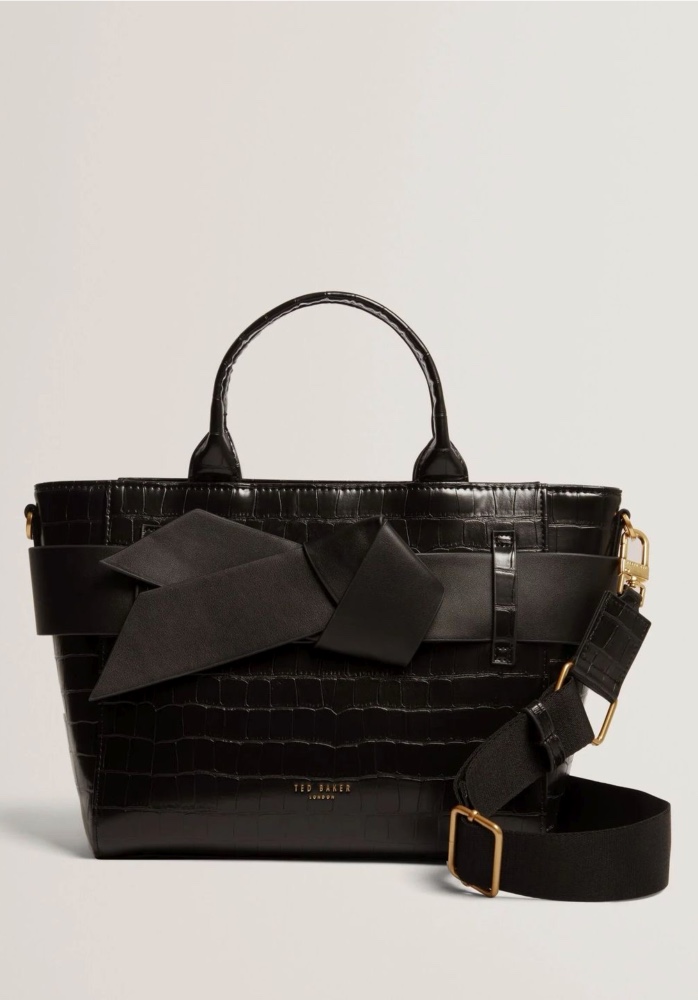 TED BAKER JJOSIA CROC EFFECT KNOT BOW CROSSBODY BAG