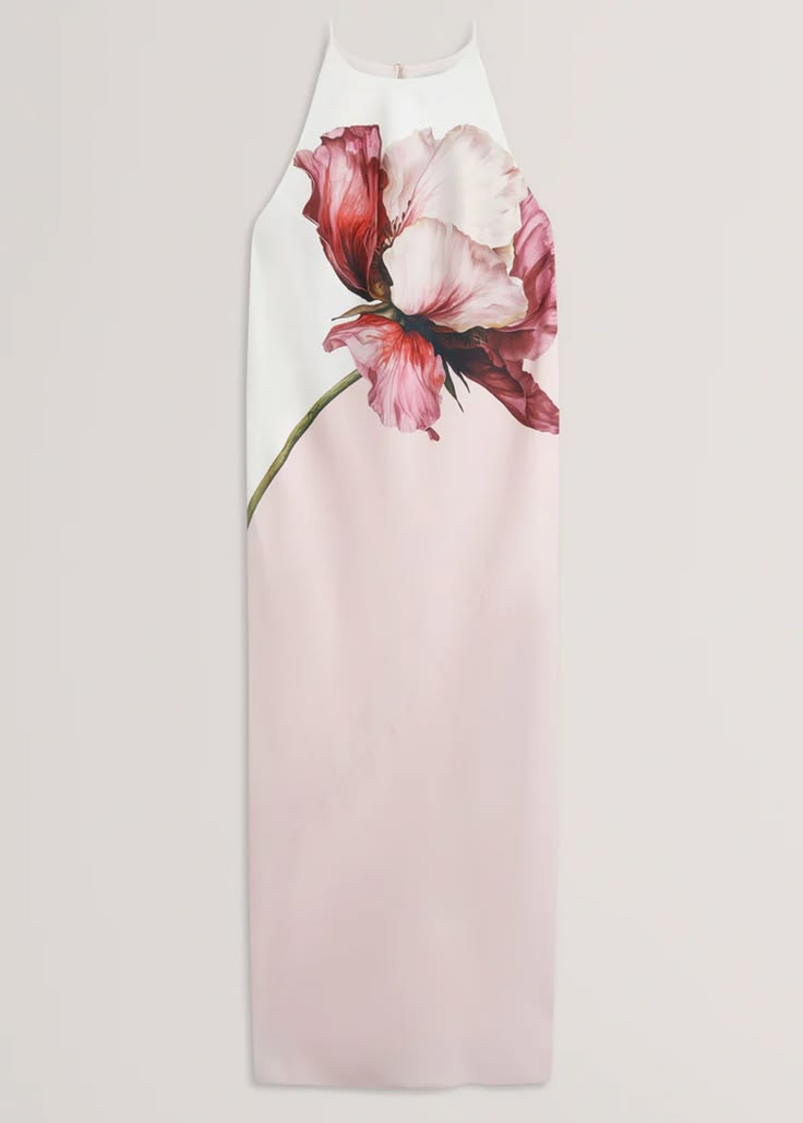 TED BAKER LOWELA FLORAL PRINT HALTER NECK MIDI DRESS