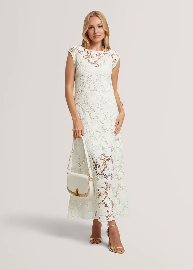 Ένα αέρινο μίντι φόρεμα Zinha από κροσέ με περίτεχνες ραφές για μια χαλαρή μποέμ γοητεία.