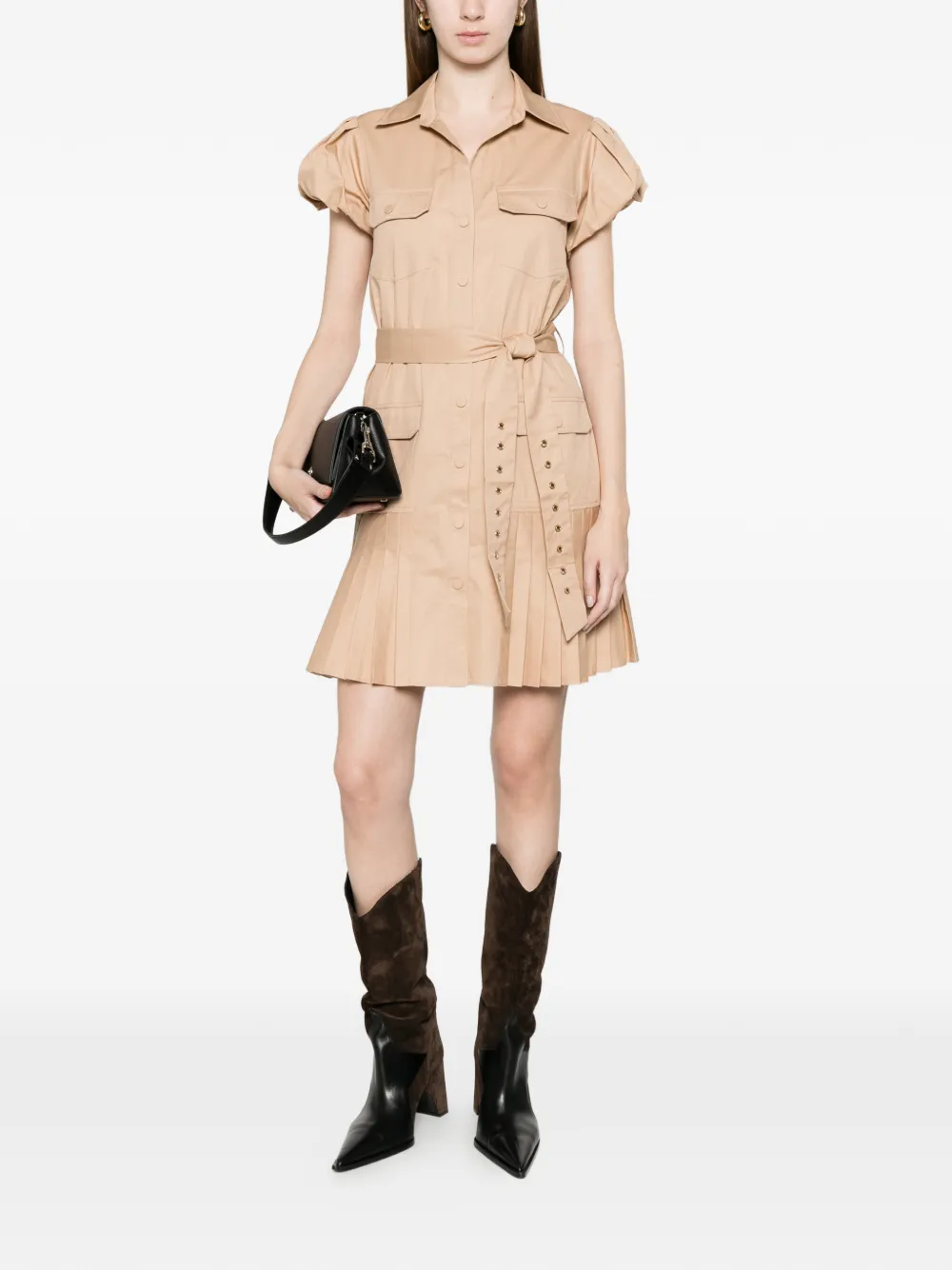TWINSET BELTED PLEATED MINI DRESS