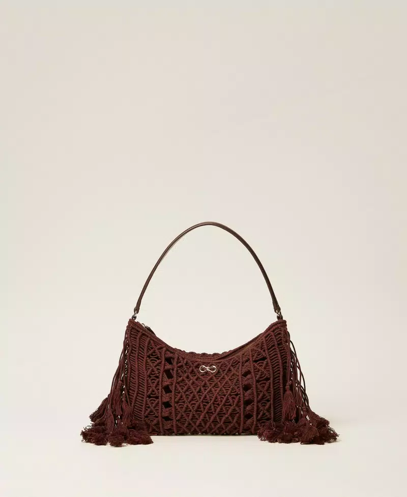 TWINSET CROCHET HOBO BAG WITH FRINGES MARRON GLACE 261TD8110.
