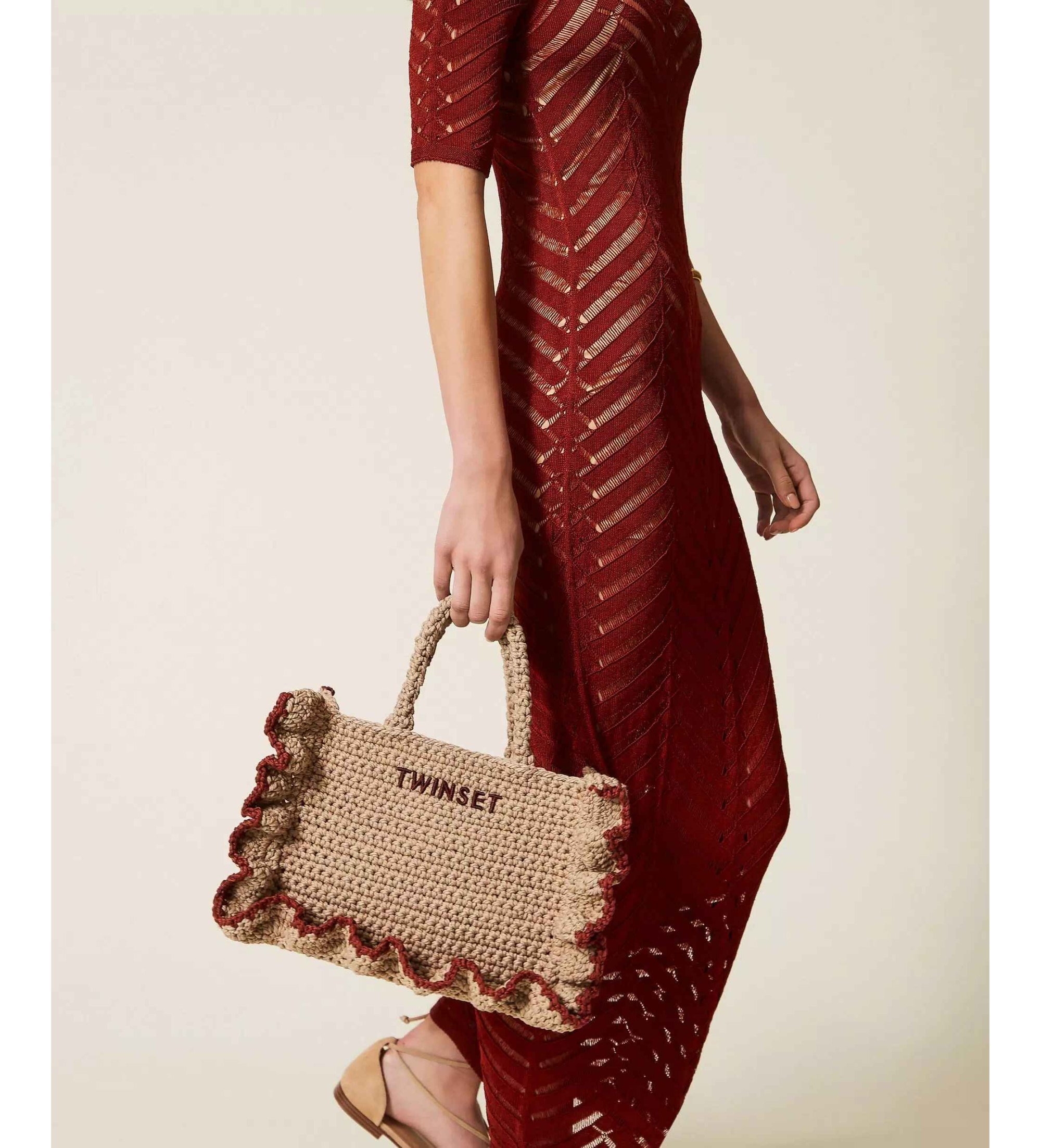 TWINSET CROCHET SHOPPER BAG WITH LOGO