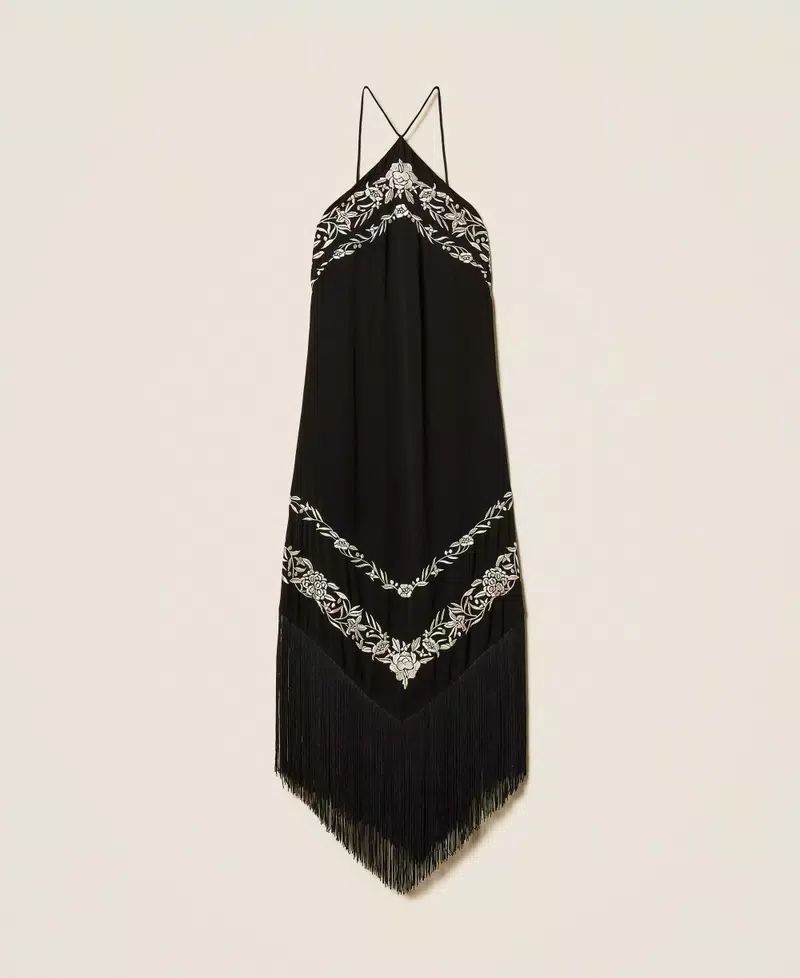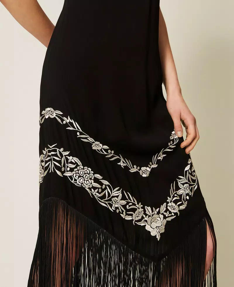 TWINSET EMBROIDERED BLACK DRESS WITH FRINGES 261TT2411.