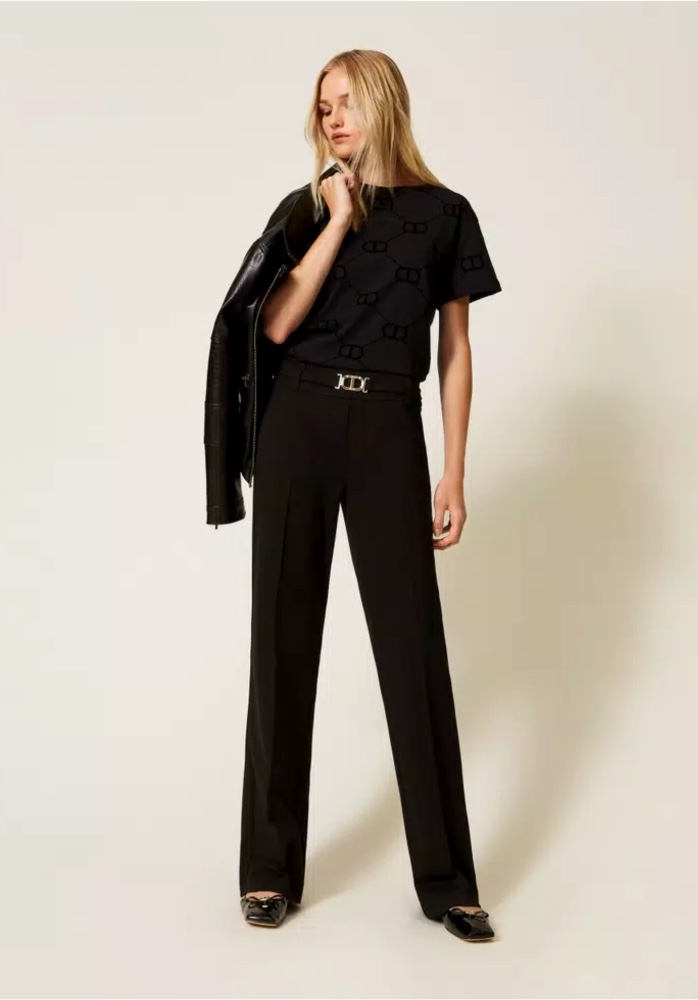 TWINSET FLARED TROUSERS WITH OVAL T BUCKLE