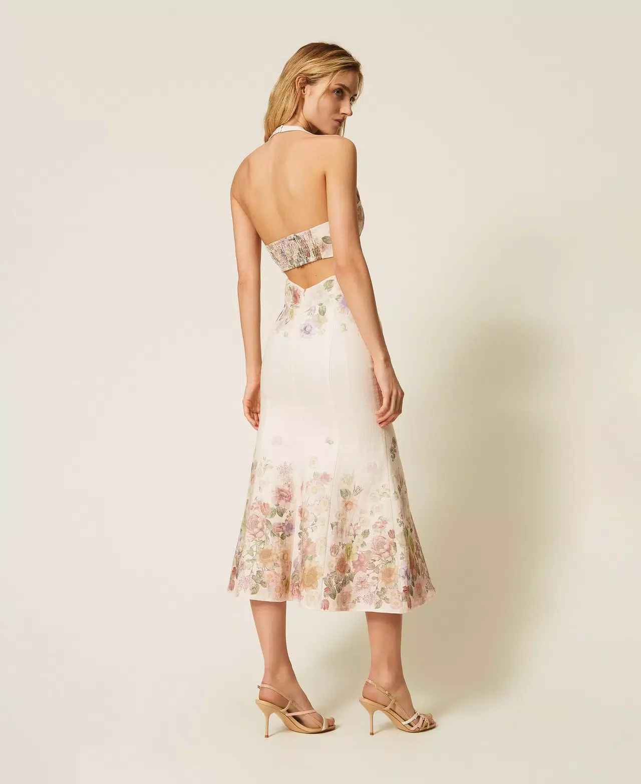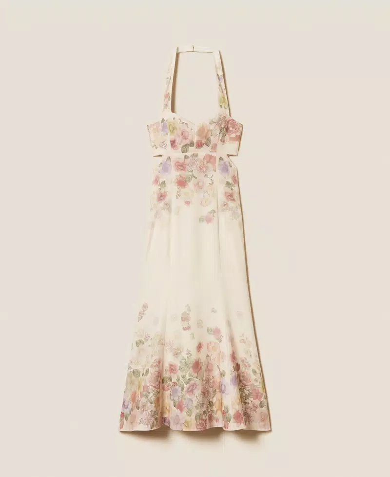 TWINSET LINEN FLORAL MIDI DRESS 261TT2570