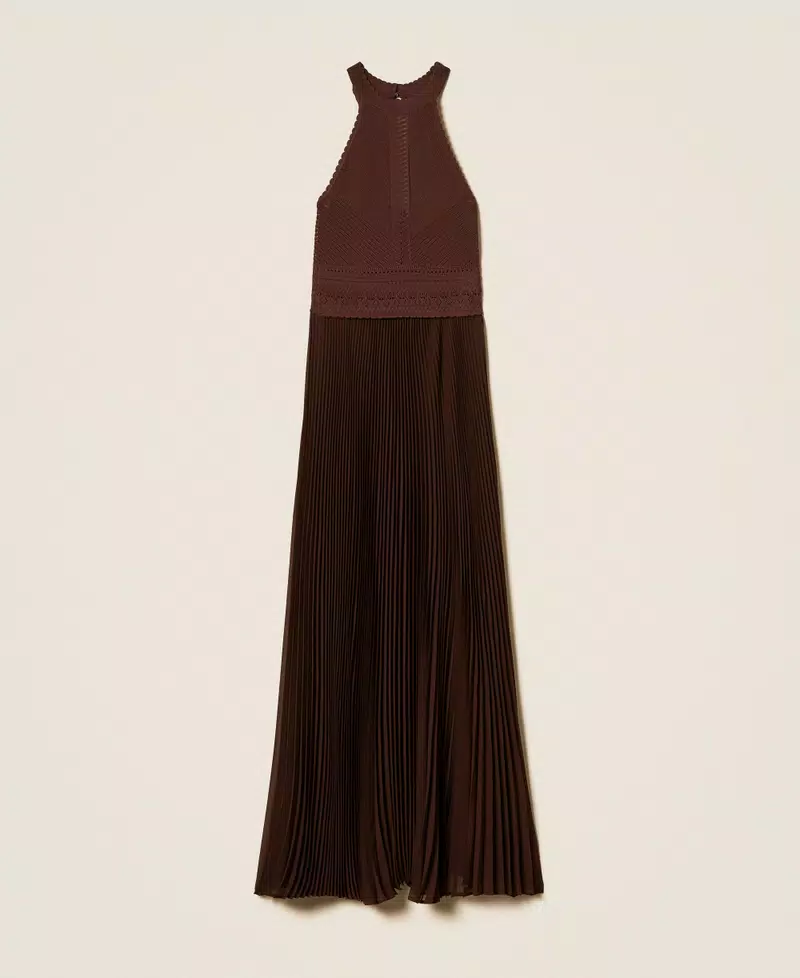 TWINSET LONG KNIT AND PLEATED GEORGETTE DRESS COFFEE LIQUEUR 261TTT3191.