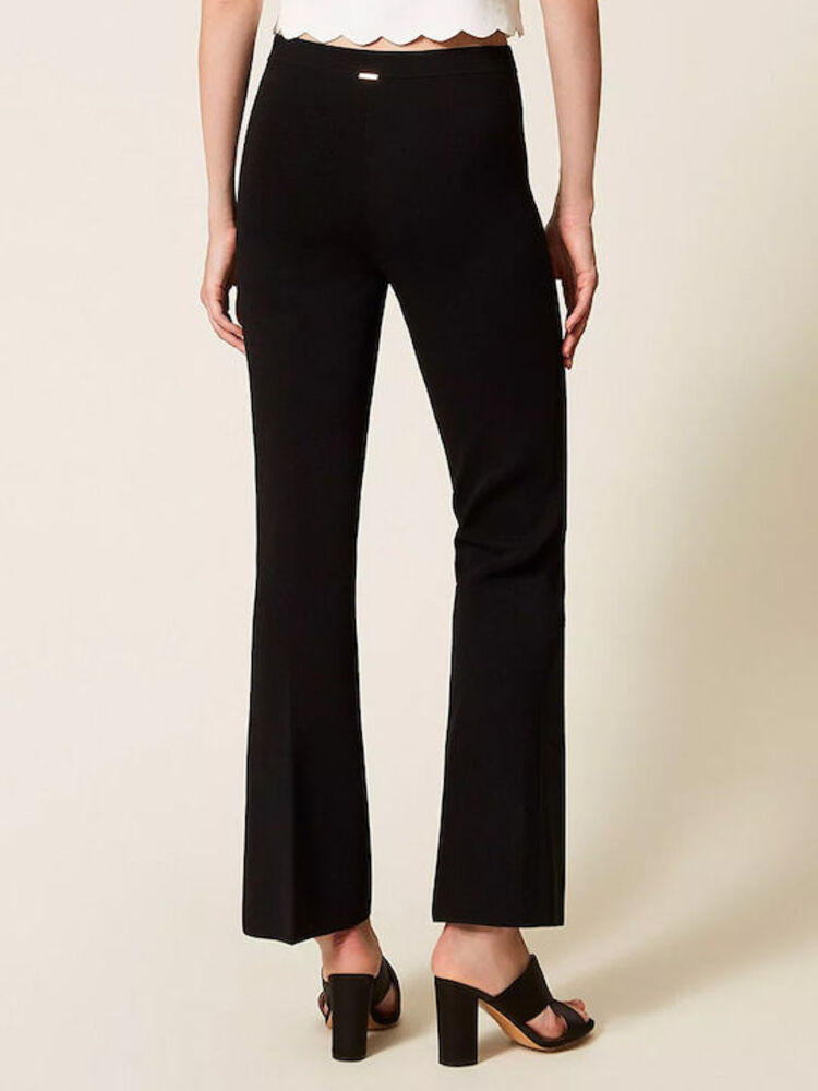 - Twinset γυναικείο υφασμάτινο μαύρο παντελόνι καμπάνα