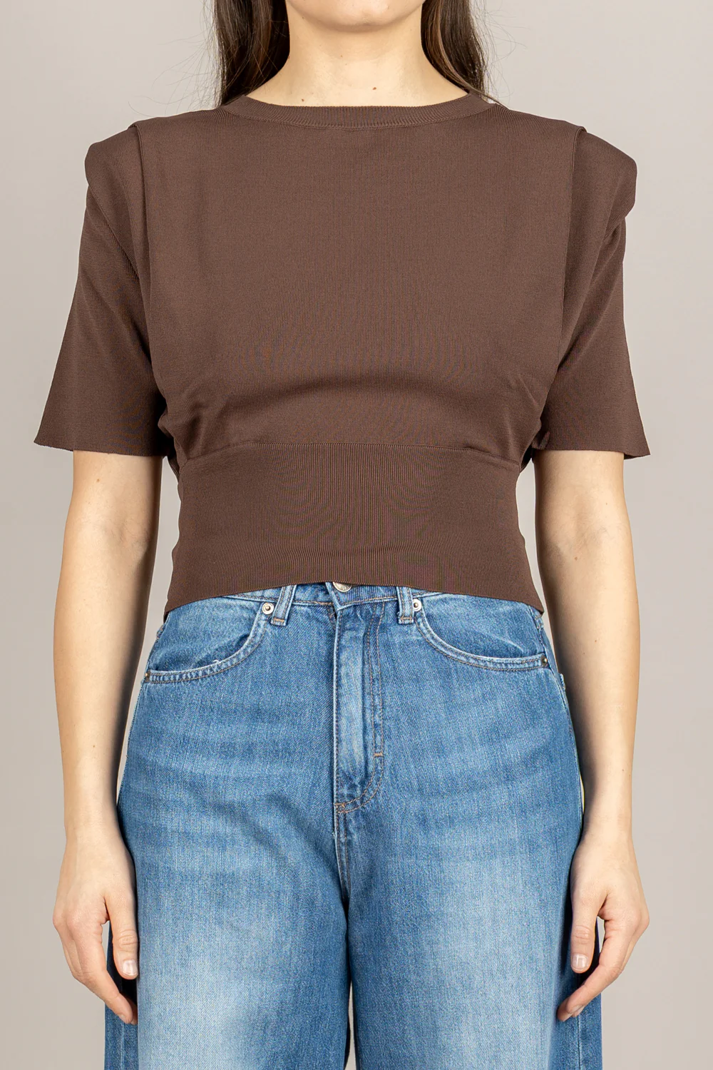 VICOLO BROWN CROP SWEATER WITH SHOULDER PADS 4AB4007 . BR