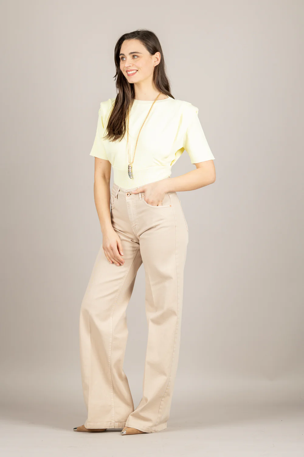 - VICOLO crop κίτρινο με βάτες στους ώμους