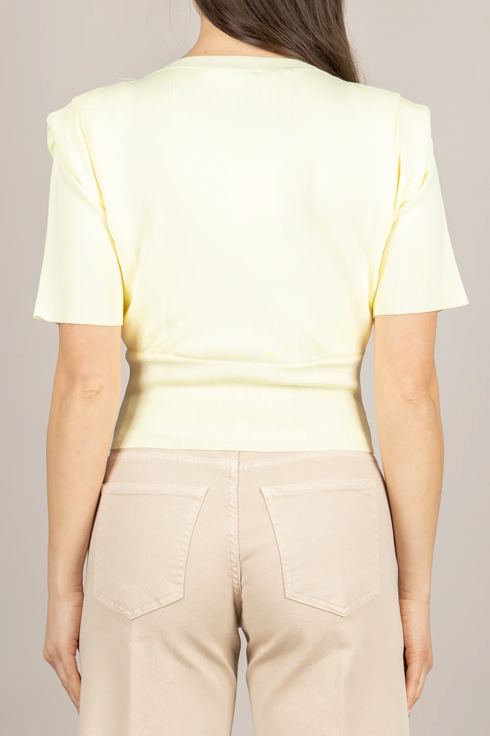 VICOLO YELLOW CROP SWEATER WITH SHOULDER PADS 4AB4007 . Y