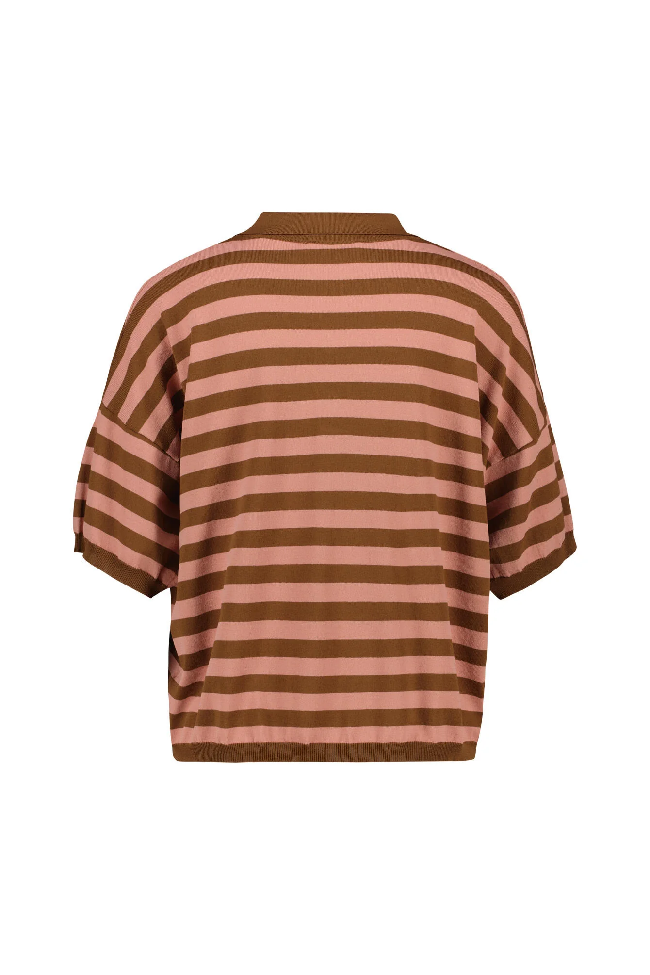- VICOLO Ριγέ πόλο μπλούζα με κοντό μανίκι σε αποχρώσεις καφέ-ρόζ